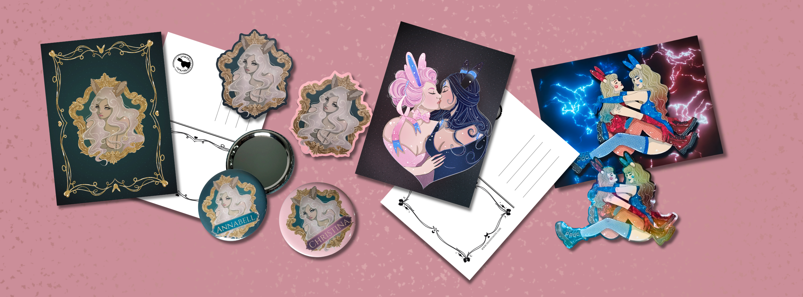 Hier findest du alle meine gezeichneten Fantasy Illustrationen. Egal ob Sticker, Postkarten oder Spiegel: Hier wirst du fündig. Einige Produkte kannst du dir personalisieren lassen.