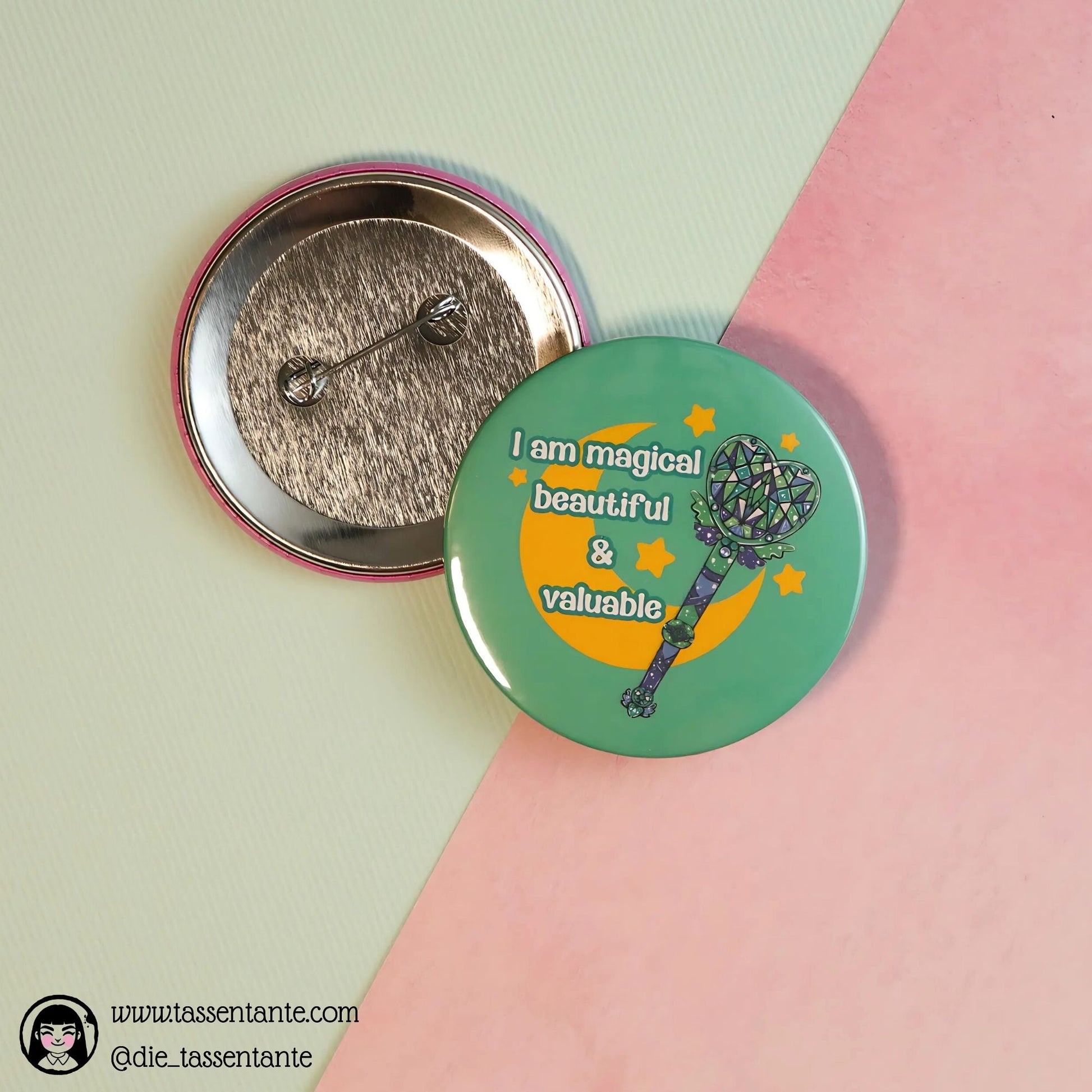 Gay Pride Button - 59mm - 90s Magical Anime Wand - Moon