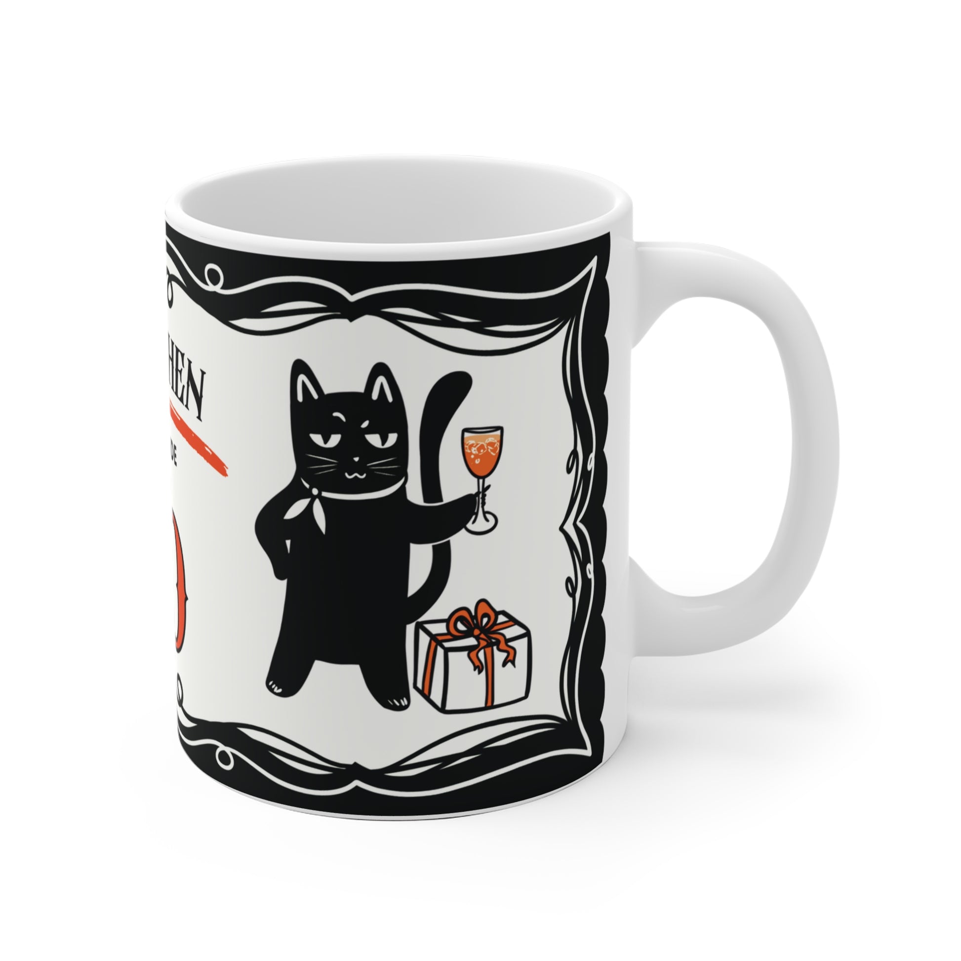 Diese lustige Geburtstagstasse zum 60. ist das perfekte Geschenk für Männer und Frauen mit Humor! Im Retro-Stil gestaltet zeigt sie eine schwarze Katze mit Prosecco, Geschenkbox und dem augenzwinkernden Schriftzug: „Stößchen Eine Legende wird 60“.