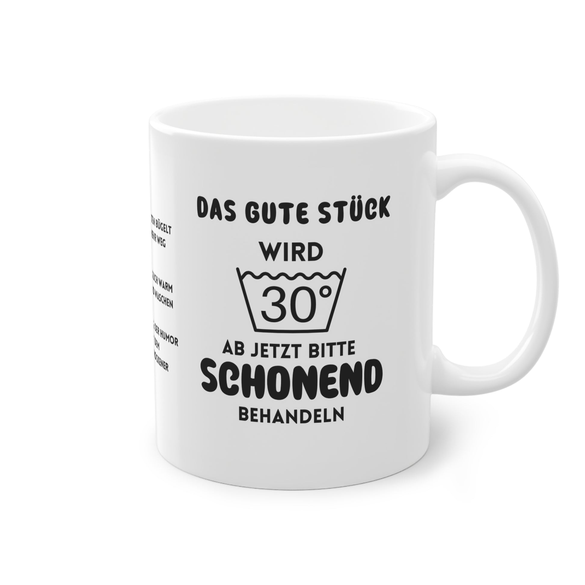 Feier den großen Meilenstein mit Humor! Die Tasse „Das gute Stück wird 30“ ist das ideale Geschenk für den 30. Geburtstag und bringt garantiert alle zum Lachen. Mit witzigen Hinweisen in der Mitte der Tasse, wie das gute Stück ab jetzt schonend behandelt werden sollte, ist sie das perfekte Highlight für jeden, der seinen runden Geburtstag mit einem Augenzwinkern genießen möchte.