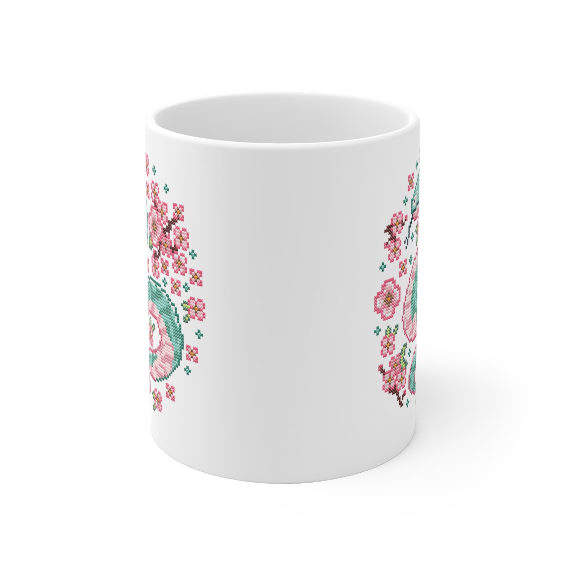 Motivtasse - Niedliche Kawaii Kreuzstich Optik Tasse - Sakura Snake
