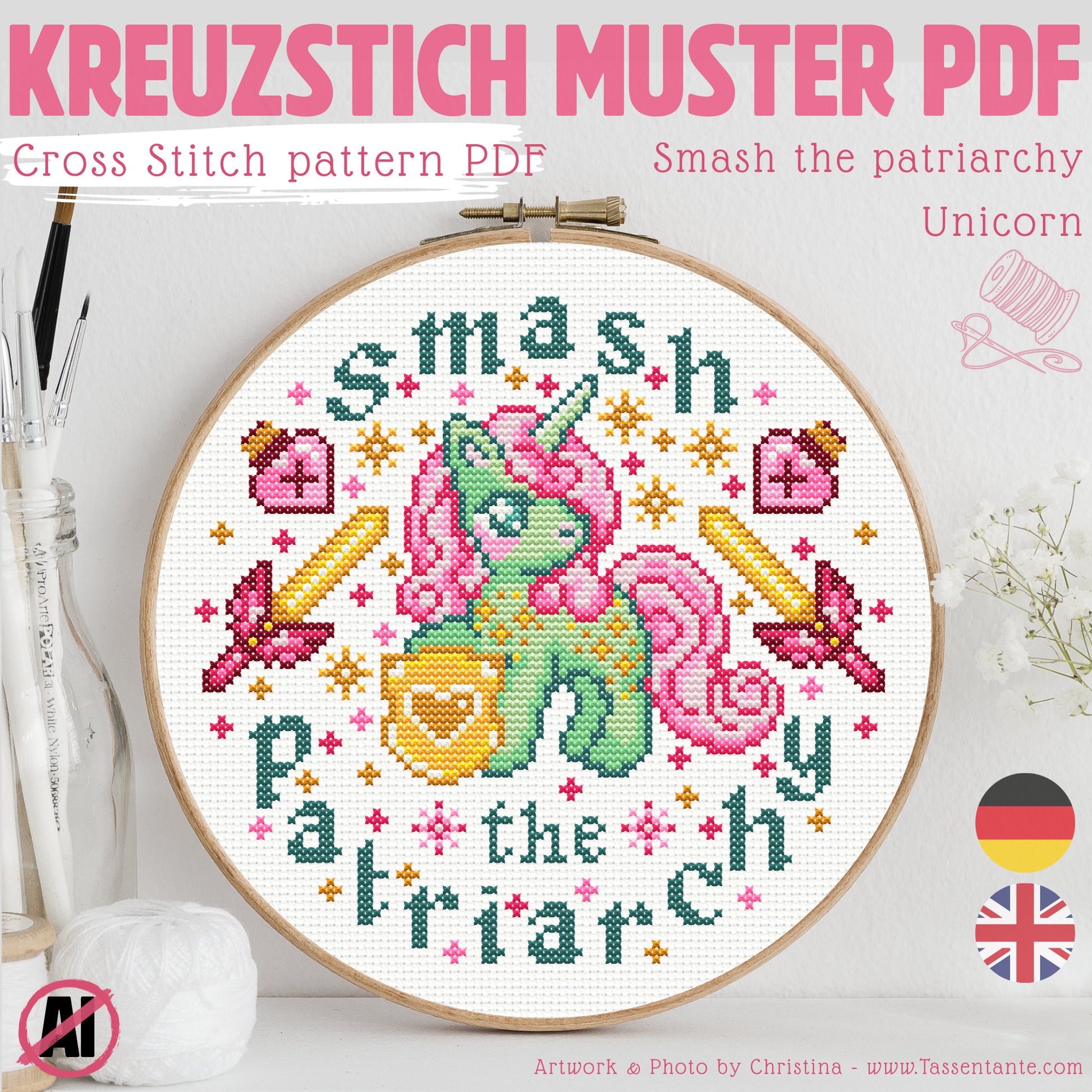 Stickvorlage Kreuzstich - Smash the patriarchy - Unicorn