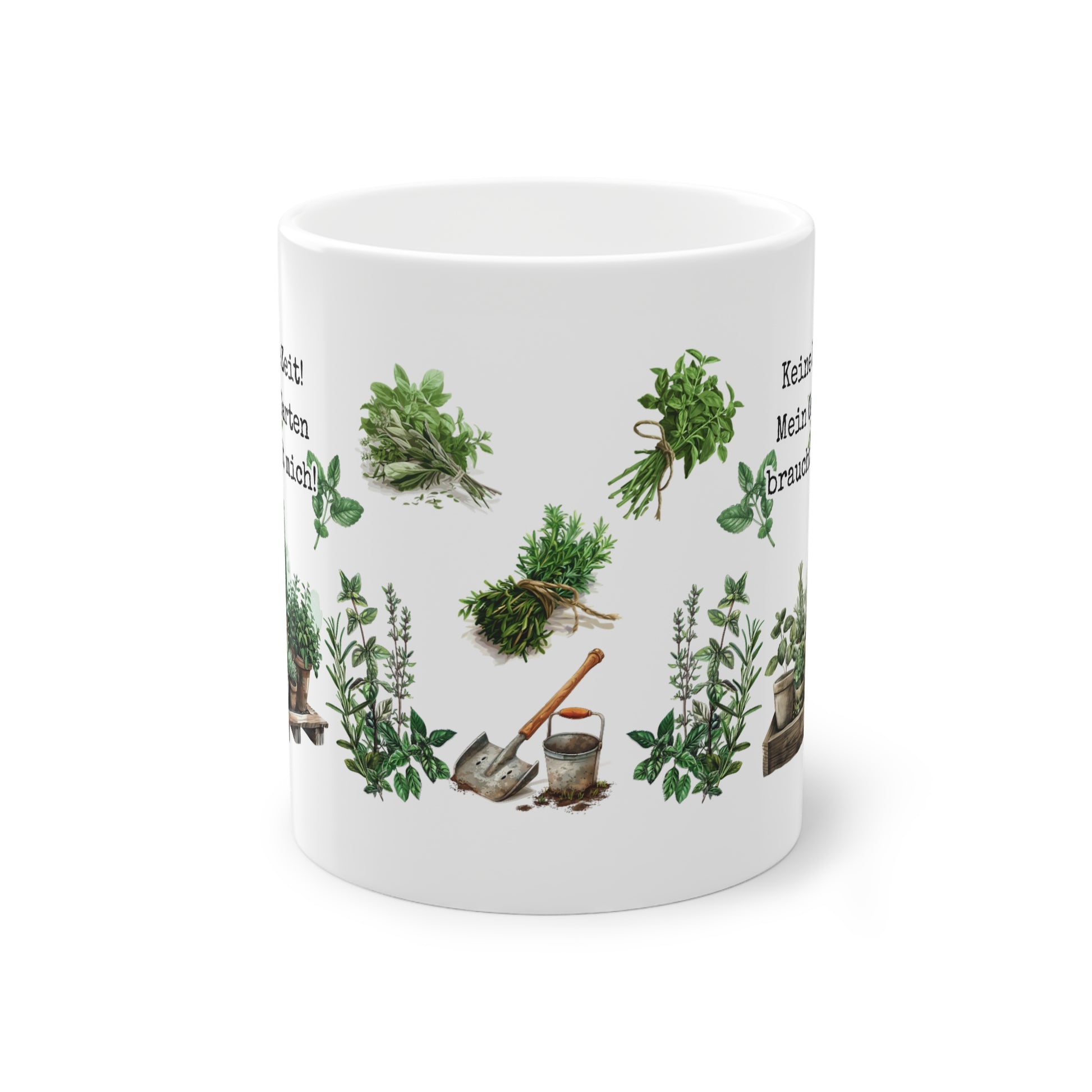 Bist du ein leidenschaftlicher Gärtner oder kennst jemanden, der es ist? Dann ist die Keramiktasse „Keine Zeit! Mein Garten braucht mich!“ genau das Richtige für dich! Diese charmante Tasse bringt mit ihrem humorvollen Spruch und den liebevollen Illustrationen von frischen Kräutern und Pflanzen eine Extraportion Grün in deinen Alltag. Ob beim morgendlichen Kaffee, dem entspannenden Tee nach einem langen Tag im Beet oder als Geschenk für Gartenfans – diese Tasse ist der perfekte Begleiter.