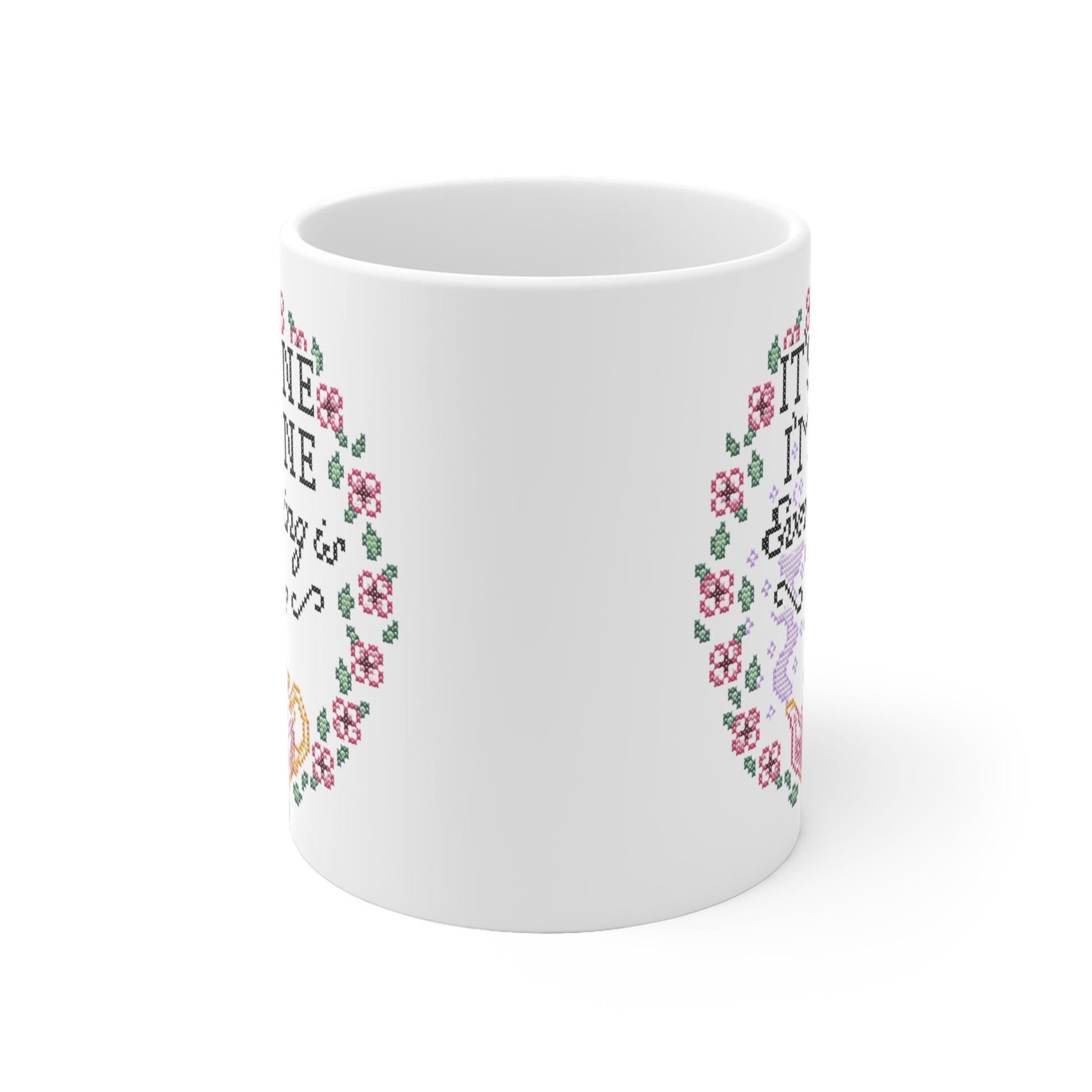 Tasse Sticken - Witzige Kreuzstich Optik Motivtasse - Geschenk für Sticker*innen- It´s fine...