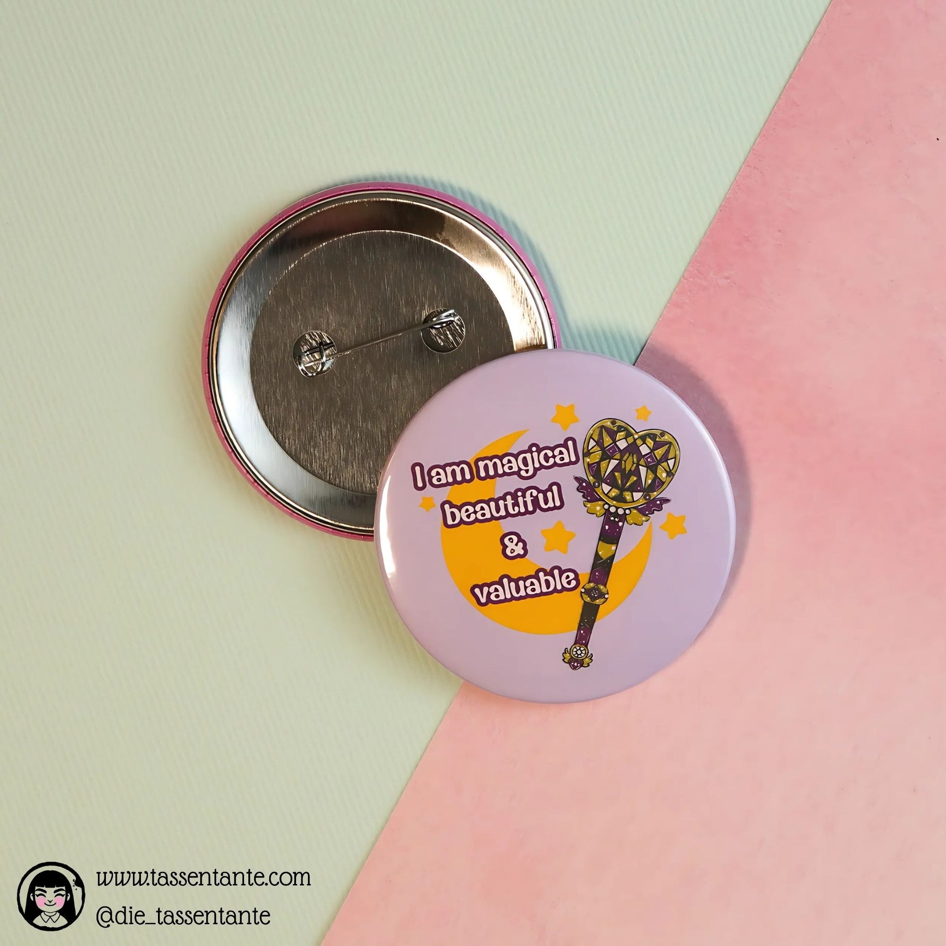 Nonbinary Pride Button - 59mm - 90s Magical Anime Wand - Moon